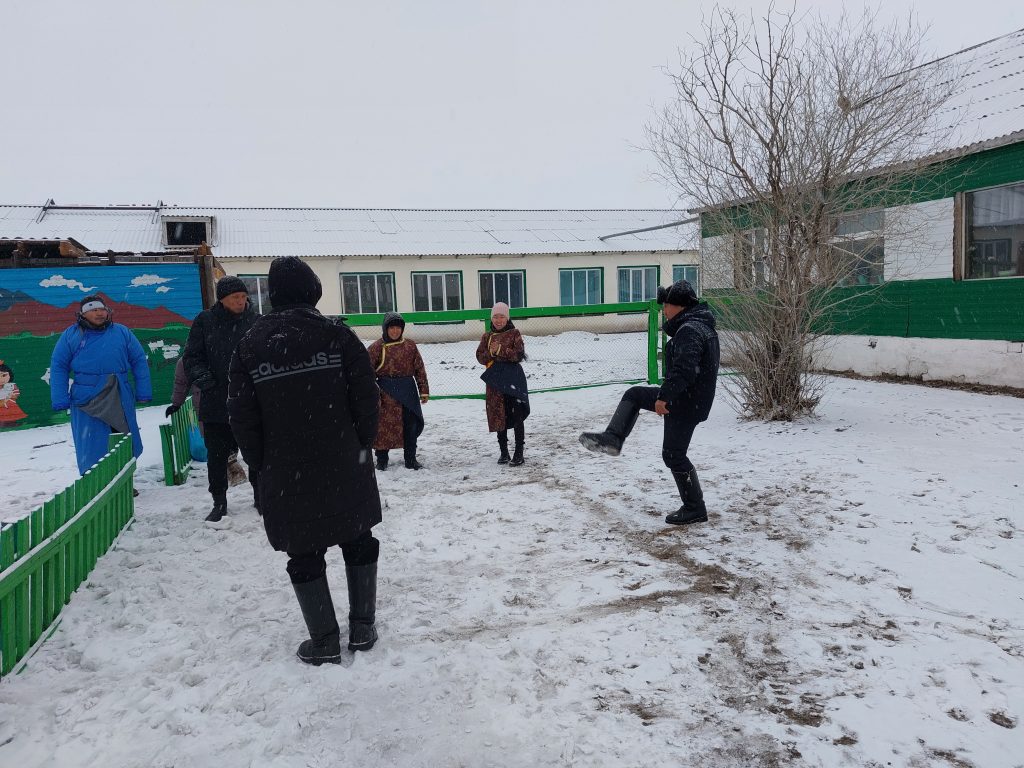 В честь праздника Шагаа и 23 февраля мы провели среди родителей, отцов соревнование «Тевекбол».