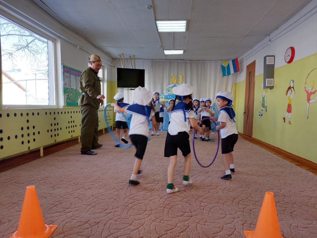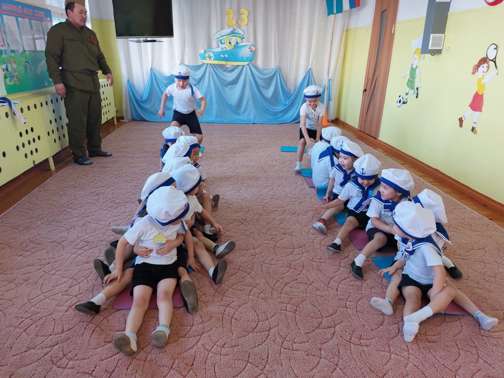 В нашем детском саду состоялись соревнования в средне-старшей группе, посвящённые Дню защитника Отечества, в которых принимали участие ребята нашей группы: поделились на команды «Парусник»и «Кораблик». Капитаны вошли со знамёнами, а команды поприветствовали друг друга девизами.