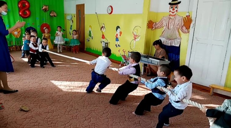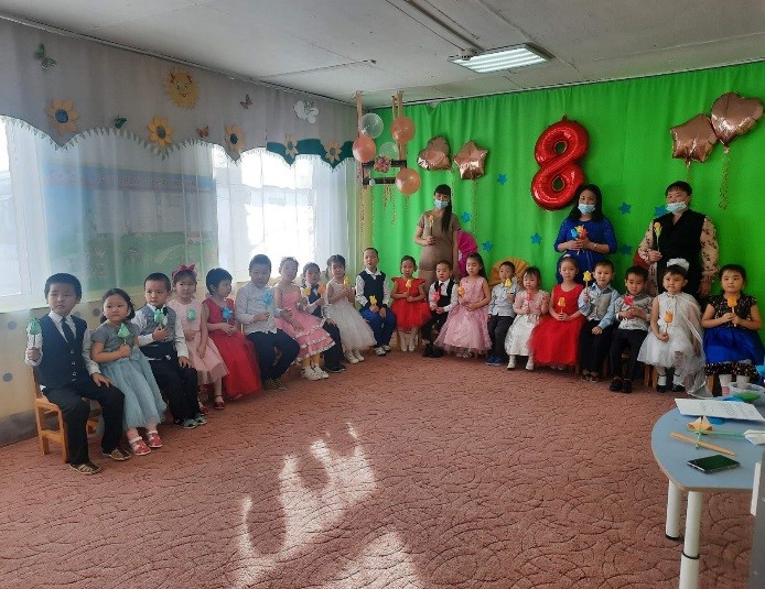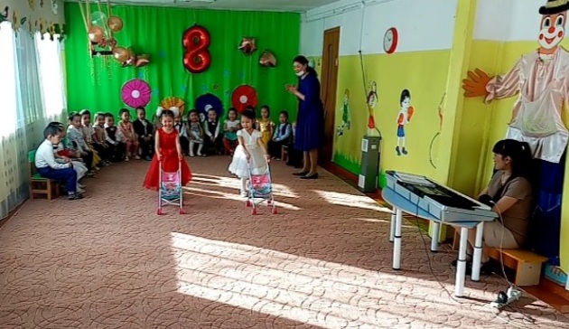 В старшей группе утренник проведен на тувинском языке. Тема утренника «Аваларга март 8 – биле!»