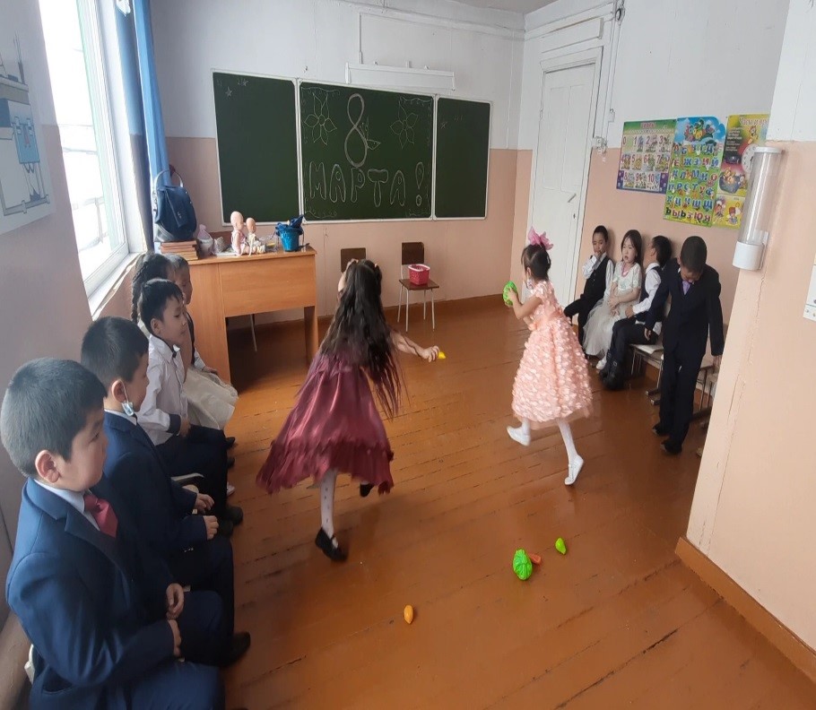 Утренник посвященный ко Дню международного женского дня 8 марта «Аваларга март 8 – биле!» начался 10:00 ч. Мероприятие проведено без участие родителей и приняли участие 20 воспитанников, все были одеты парадные, вечерние костюмы . Дети активно принимали участие на утреннике: пели песни, «Авам», «Мамочка милая, мама моя», «Солнышко лучистое», «Эреспей». Было проведена подвижные игры «Ухажеры», «Цветок любви и нежности», «Хозяйки», «Печем блины». Дети которые выучили стихотворение все активно выступили. Педагогический состав старшей группы активно участвовали в подготовке и проведении мероприятия. В заключительной части утренника дети танцевали «Флешмоб» Мероприятие было проведено в спортивном зале, зал было проветрена, была проведена влажная уборка. В поставленные цели мероприятия, по моему мнению, были достигнуты. Дети проявляли интерес к мероприятию. Игры, песни и танцы соответствуют возрасту детей старшей группы.